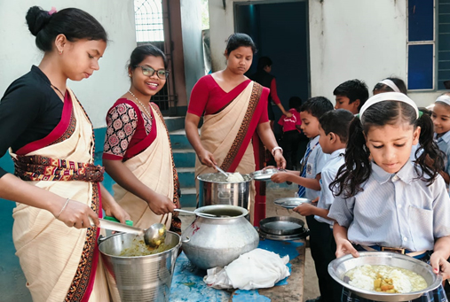 The Feeding India program is an initiative that aims to provide nutritious meals to children in schools, particularly those from low in-come families. The goal is to ensure that all the children in their formative years gets the right nutrition for their holistic development. Our Sacred Heart English Medium School Baburbana students are also getting benefits from Feeding India. The parents of these children are from extremely impoverished backgrounds. They struggle to make ends meet, often living in poverty stricken conditions with limited access to basic necessities like food, clean water, and sanitation. Many of these parents work as daily laborers, street vendors, domestic workers and small scale farmers. Their incomes are meagre, and they often find it challenging to provide for their families' basic needs. They sent their children to Sacred Heart English Medium School as it is affordable and get concession.